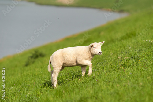 Obraz premium Sheep on the water at Easter. Netherlands, Zeeland, Oosterschelde.