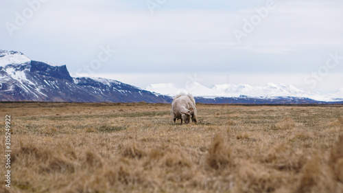 © glowonconcept, Fototapeta premium Sheep ram got fur shaved grazing in Iceland livestock farm landscape