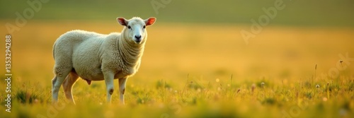 © Phennapha, Fototapeta premium Sheep standing alone in field, grassland, rural life