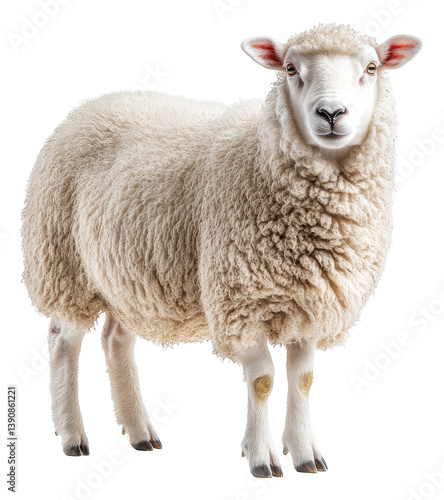 Fototapeta premium Sheep standing on a white background with fluffy wool and a calm expression...