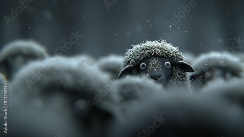 Obraz premium sheep standing snow model hiding focus close mischievous eyes stormy sweet...