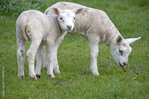 © anjokan, Obraz premium sheep walking in grassland at springtime