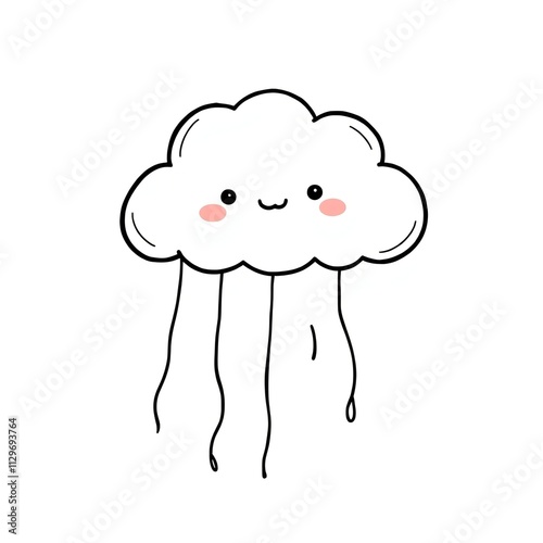 © bayu, Fototapeta premium sheep with a smile, simple and cute doodle line cloudy
