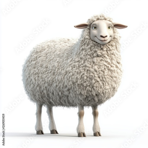 Naklejka premium Sheep with fluffy white wool standing happily isolated on white