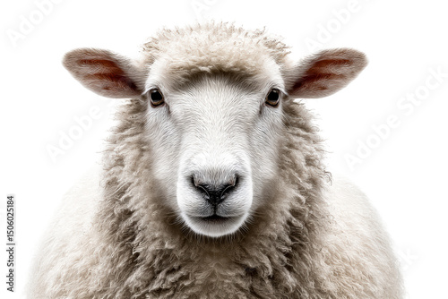 Fototapeta premium Sheep with fluffy wool and gentle expression on transparent background