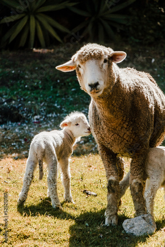 © Jose, Fototapeta premium sheep with her newborn sheep showing mother's love in animals