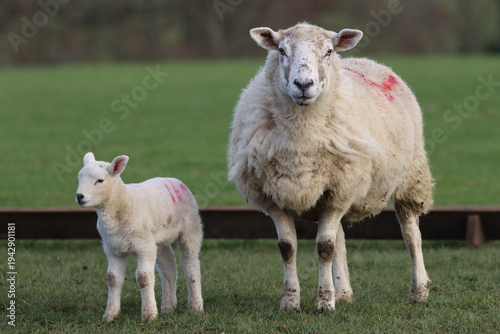 © Francesca Leslie, Fototapeta premium Sheep with lamb in a field in spring