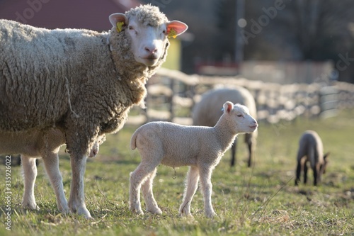 © muro, Obraz premium sheep with lamb on farm