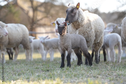 © muro, Obraz premium sheep with lamb on farm