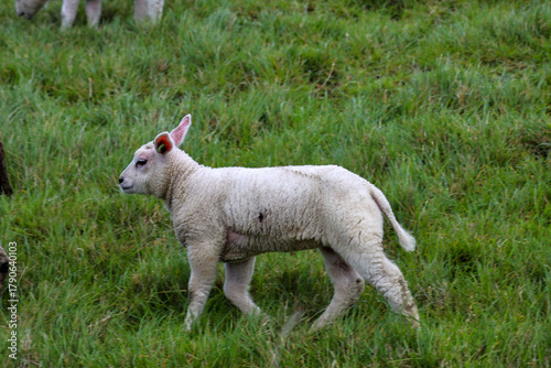 Obraz premium Sheep with little lambs on a meadow at farms