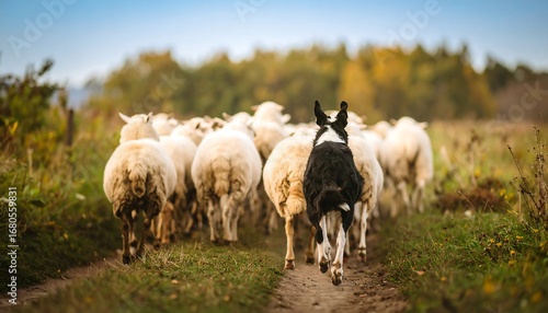 © Renail, Obraz premium Sheepdog herding sheep