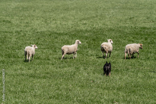 Obraz premium Sheepdog sheep herding trail dog on a beautiful sunny day