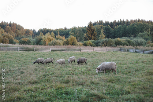 © paralisart, Fototapeta premium Sheeps and goats on a farm. Agriculture, domestic cloven-hoofed animals.