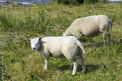 © tetyanaustenko, Obraz premium Sheeps at a dike, the Netherlands