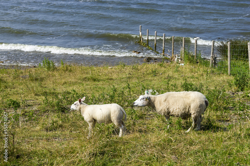© tetyanaustenko, Obraz premium Sheeps at a dike, the Netherlands