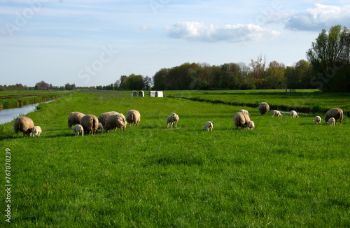 © Alekss, Obraz premium sheeps graze on a green meadow