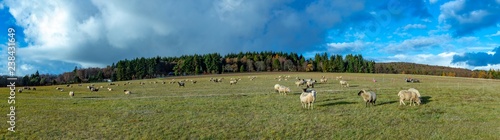 © travelview, Fototapeta premium sheeps grazing at the green meadow