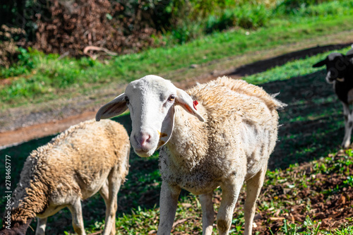 © Elo Kyrmse, Obraz premium Sheeps grazing in green pastures. São Roque, Brazil