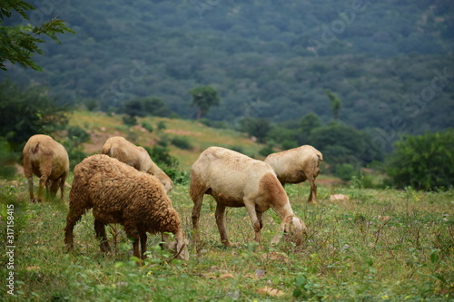 © Vivek, Obraz premium Sheeps in a field