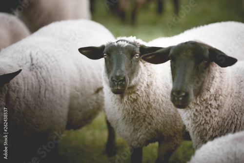 © MTaitas, Fototapeta premium sheeps in a field on a misty cold morning