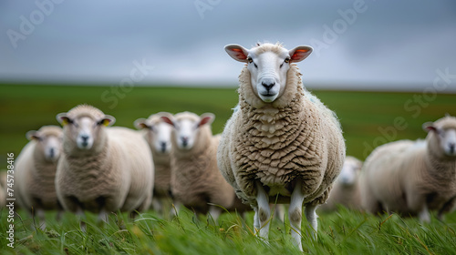© Curva Design, Obraz premium Sheeps in a meadow in the mountains - AI Generated