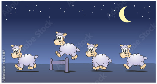© jokatoons, Obraz premium Sheeps Jumping Night