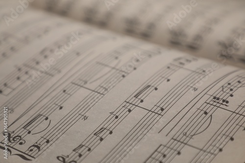 Obraz premium Sheets with musical notes as background, closeup