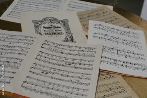 © Elena, Fototapeta premium Sheets with notes are spread out on the table
