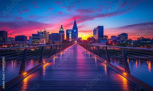 © Александр Михайлюк, Fototapeta premium Shelby Street Pedestrian Bridge at dusk, Nashville, Tennessee, USA