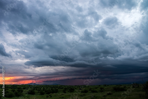 © Tonia, Obraz premium Shelf cloud over grasslands at sunset
