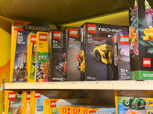 Fototapeta premium Shelf of lego technic and creator boxed sets