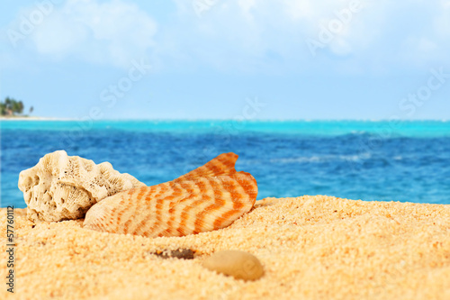 Obraz premium Shell and coral on the beach