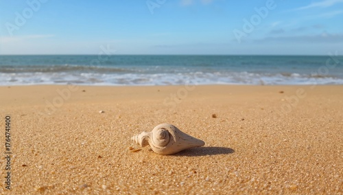 © CryptoCanvas, Obraz premium Shell resting on sandy shore