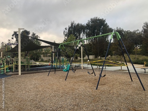 © YueStudio, Fototapeta premium Shelter-in-place: empty playground in the park