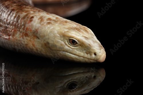 © seregraff, Naklejka premium Sheltopusik or European Legless Lizard, Pseudopus apodusapodus isolated on Black background with reflectoin