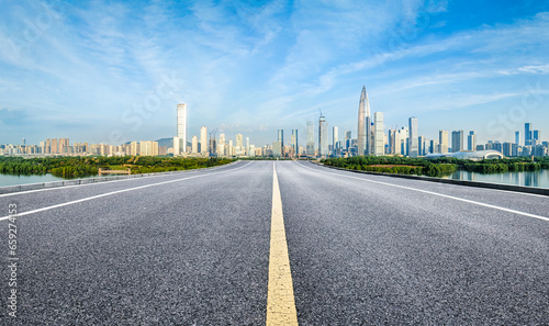 © zhao dongfang, Fototapeta premium Shenzhen city skyline and asphalt road background
