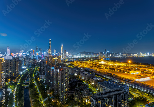 Obraz premium Shenzhen city skyline and waterfront reflecting the vibrant lights during the...