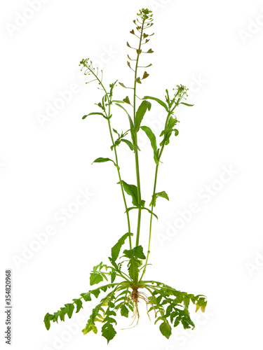 Fototapeta premium Shepherd's purse plant isolated on white, Capsella bursa-pastoris