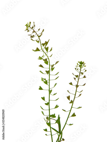Fototapeta premium Shepherd's purse plant isolated on white, Capsella bursa-pastoris