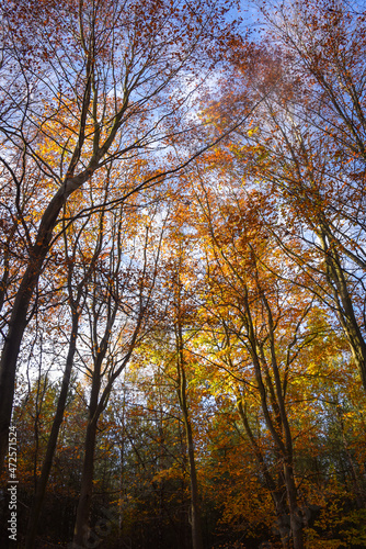 © Mark, Fototapeta premium Sherwood Forest, UK - 17 Nov, 2021: Autumn leaves and colours in Sherwood Forest, Sherwood Pines, Nottinghamshire, UK