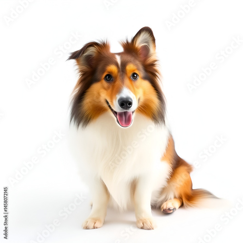 © Rebekah, Fototapeta premium Shetland Sheepdog sitting in front of a white background