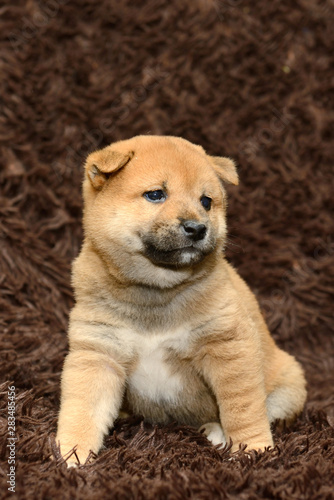 © ElenaPM, Fototapeta premium Shiba inu puppy on brown background