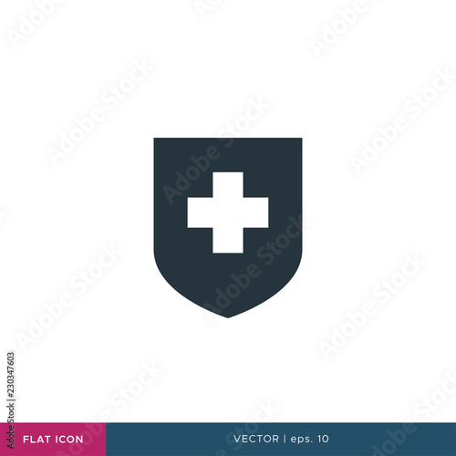 Obraz premium Shield and Medical Cross Icon Vector Logo Flat Design Template.