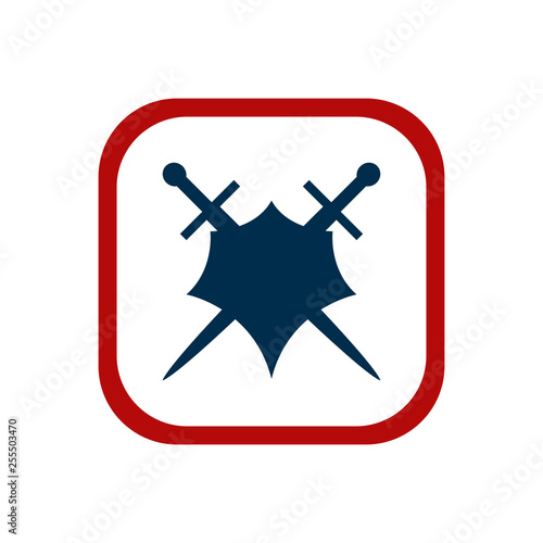 © flexelf, Obraz premium Shield and sword emblem in a square frame.