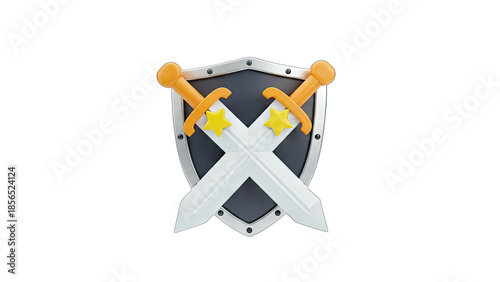 Naklejka premium Shield and Swords Crossed Emblem on White Background