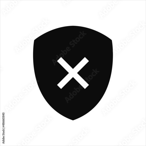 Obraz premium Shield check mark false icon or security shield danger protection icon with cross symbol. Vector clipart illustration