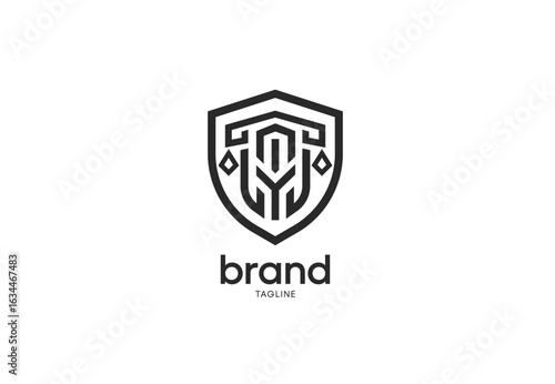 Naklejka premium Shield emblem with tree silhouette for business branding