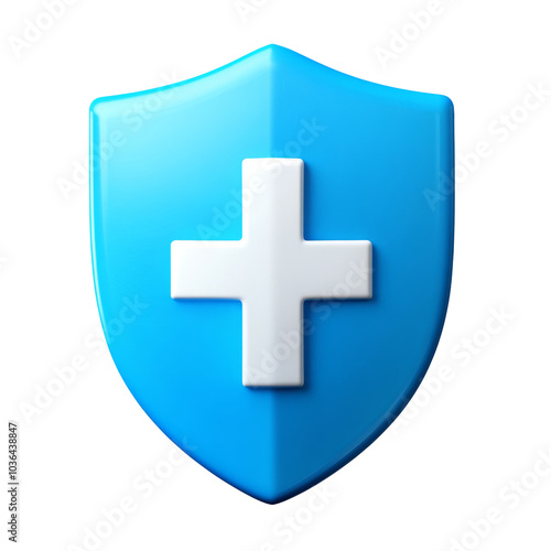© Papugrat, Fototapeta premium shield first aid cross 3d render icon isolated on transparent background cutout