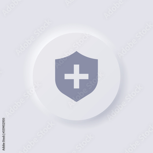 © aiinue, Obraz premium Shield icon, White Neumorphism soft UI Design for Web design, Application UI and more, Button, Vector.