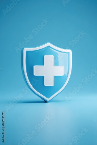 Fototapeta premium Shield Icon with Medical Cross on Blue for Health Insurance Ad